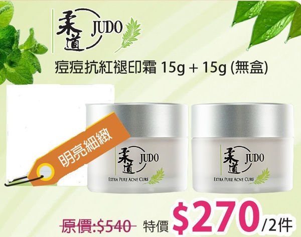 Judo 柔道 -痘痘抗紅褪印霜 15g (無盒)+ 15g (無盒) 由天然成份提煉而成,能有效殺菌、收毛孔,紓緩紅腫現象。