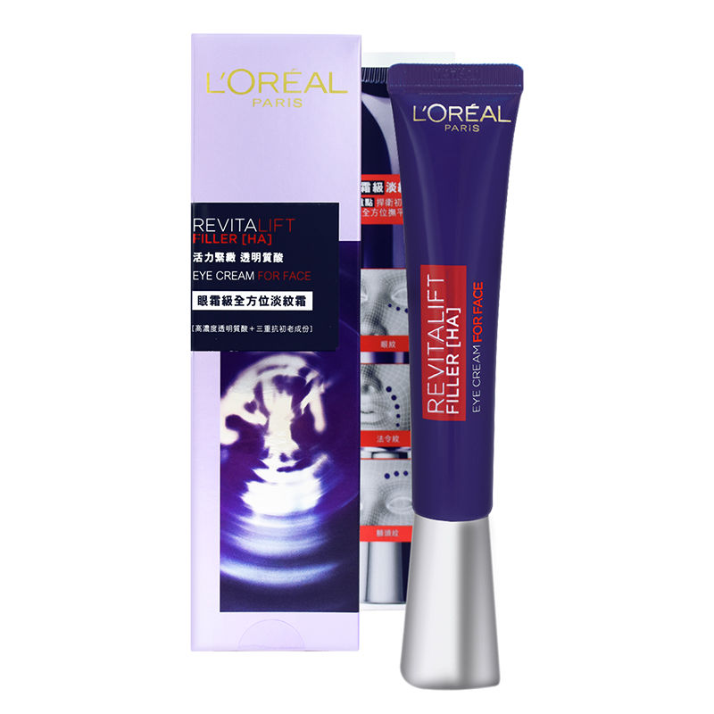 L‘ORÉAL PARIS經歷多年科學研究,推出第一^支眼霜級全方位淡紋霜。含5倍*高濃度透明質酸及10 項專利科技加乘#,針對性撫平各種臉部細紋。 ^指L'ORÉAL PARIS品牌內 *指配方中添加透明質酸鈉為L’Oréal Paris 活力緊緻透明質酸充盈導入凝露精華水的五倍 #指歐洲發明專利2項;法國發明專利5項及中國發明專利3項