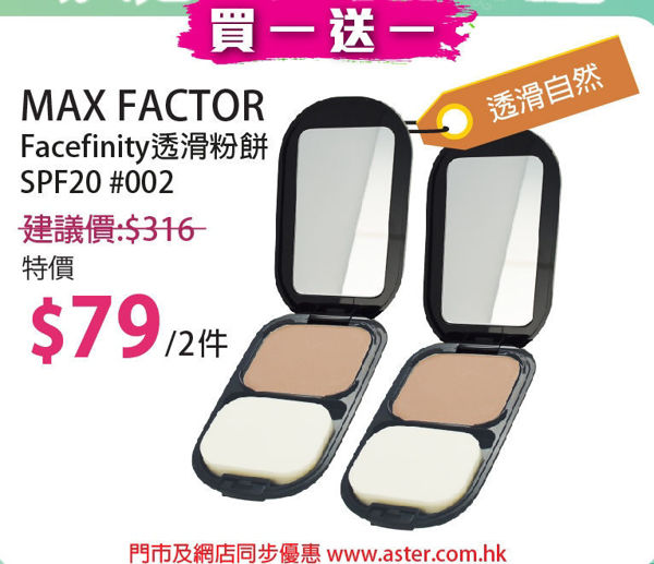 (買一送一)Max Factor 透滑粉餅 SPF20 #002 10克